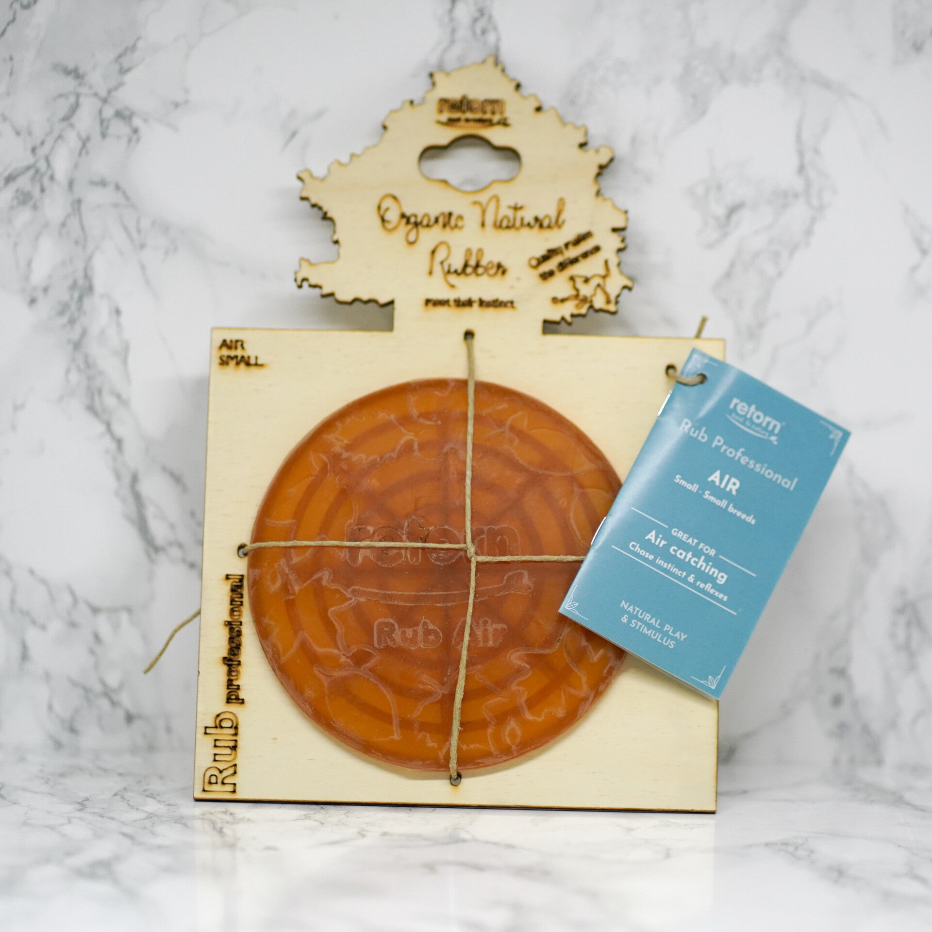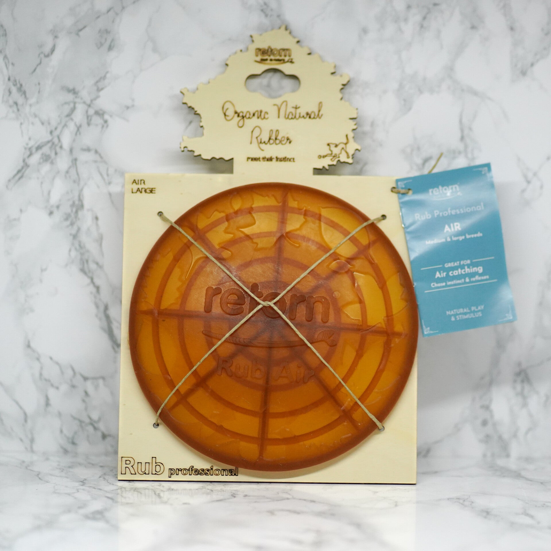 Retorn is een Spaans merk. De Rub Air is gemaakt van 100% organische, natuurlijke hars. De Air is een leuk gooi speeltje. De Rub Air is zacht voor de tanden en zeer flexibel.