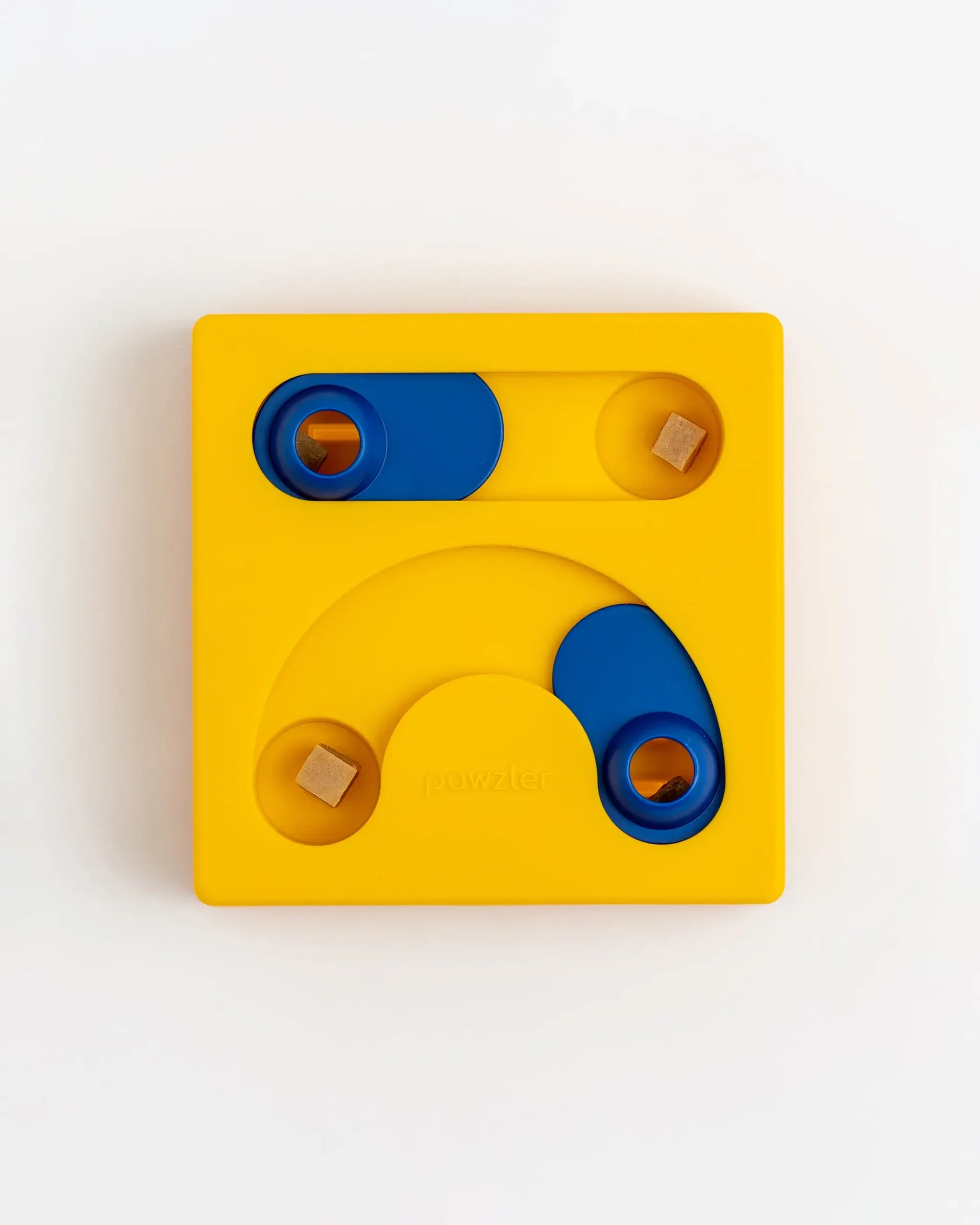 Pawzler is designed and manufactured in Europe, ensuring high quality. The Maya Pawzler is made out of food safe materials, has no sharp edges and can be put in the dishwasher and freezer. The colors are in blue and yellow tones, so dogs can see them.