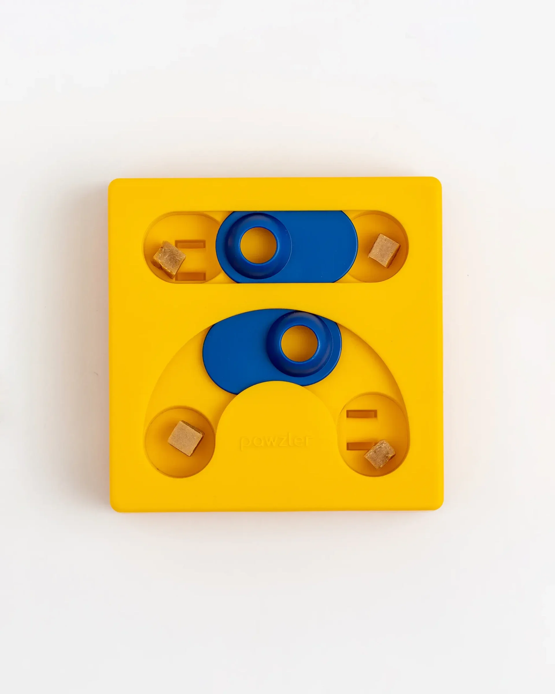 This Kaya piece from Pawzler has two sliders that your dog needs to push to find rewards. It can be opened with a dog’s nose, tongue, or paw. The Kaya piece takes 4 spots on your Pawzler base