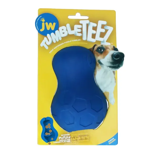 De JW Tumble Teez heeft een uniek wiebelend ontwerp. Er kunnen daarnaast ook voertjes in de Tumble Teez gestopt worden. De uitdaging om de traktaties te krijgen zorgt voor mentale stimulatie en stimuleert probleemoplossende vaardigheden. De Tumble Teez is gemaakt van duurzaam, niet-giftig rubber. JW speeltjes staan bekend om hun kwaliteit en duurzaamheid.