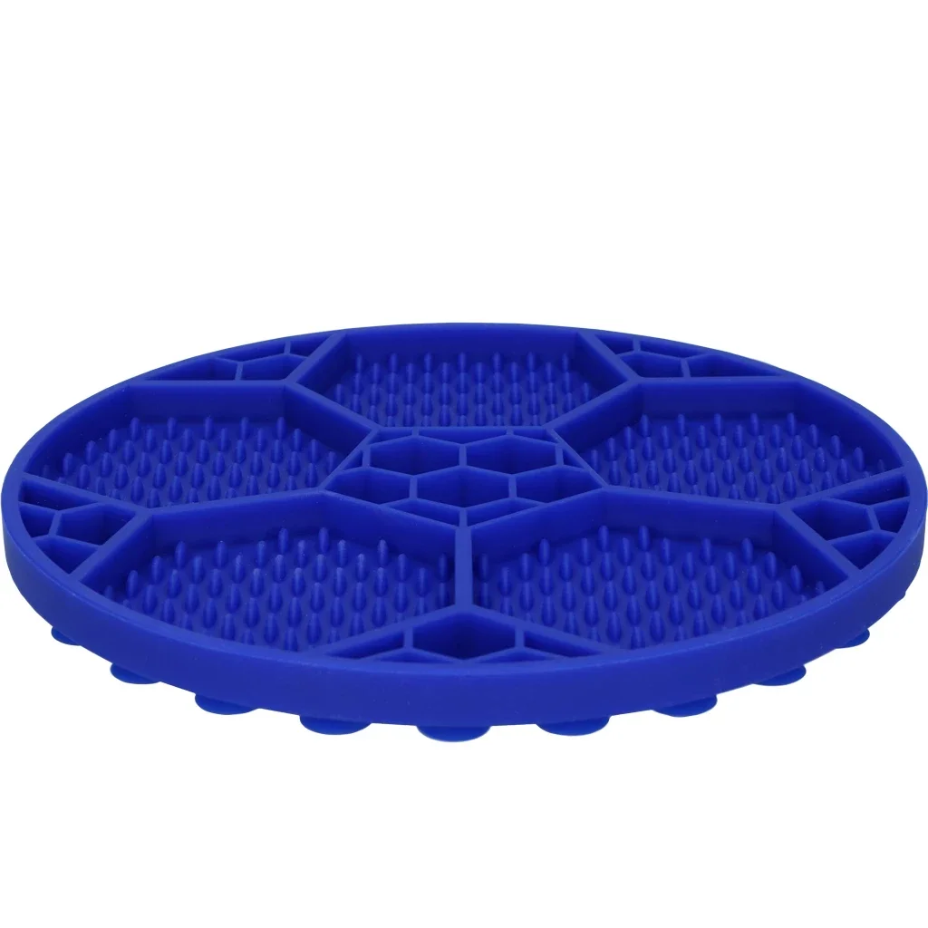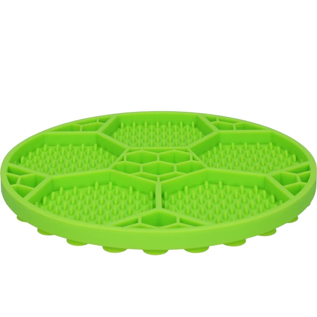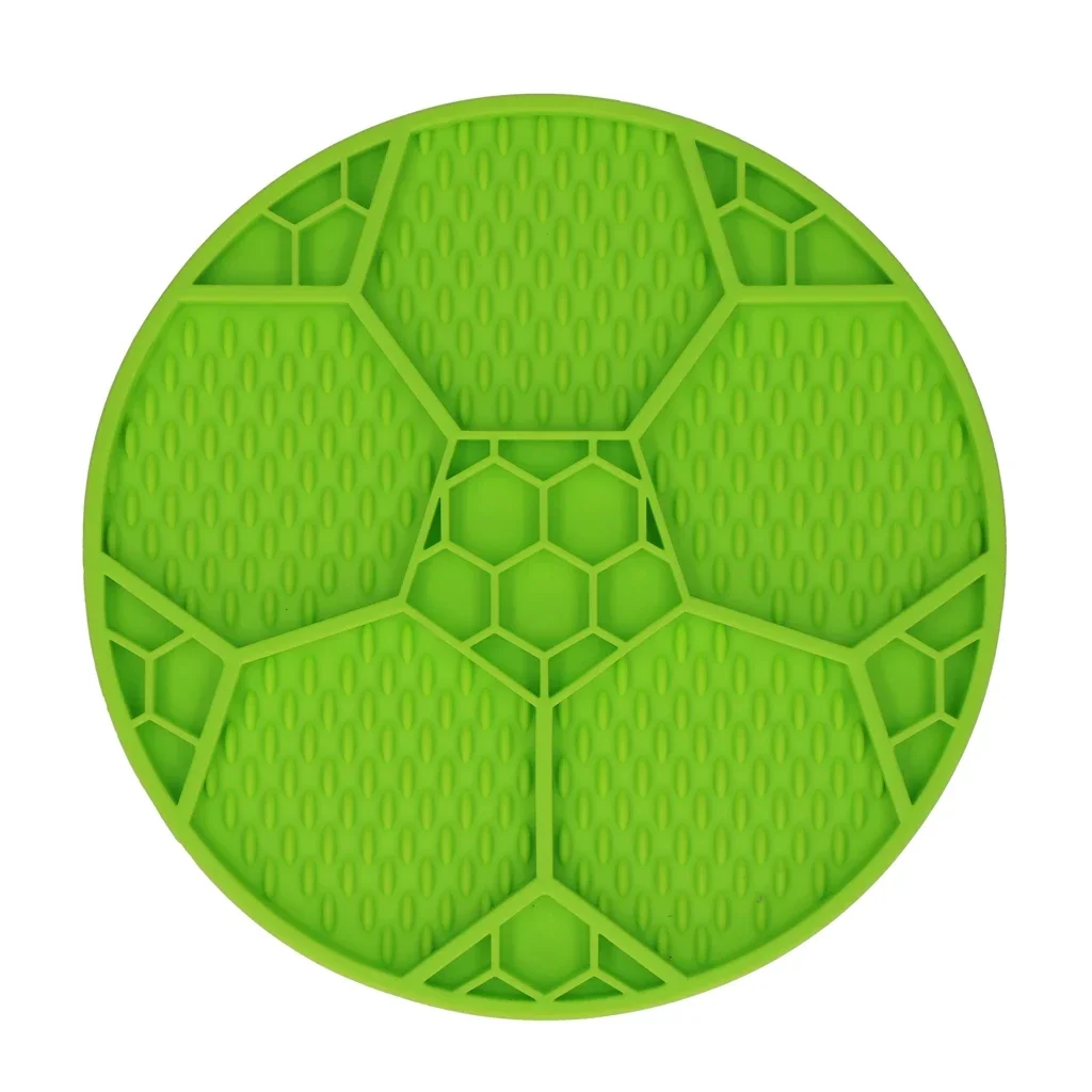 Deze lickmat in de vorm van een voetbal van Eat Slow Live Longer is gemaakt van 100% siliconen (BPA-vrij) en kan in de vaatwasser of vriezer. Aan de onderkant zitten zuignappen om de lickmat op zijn plek te houden.