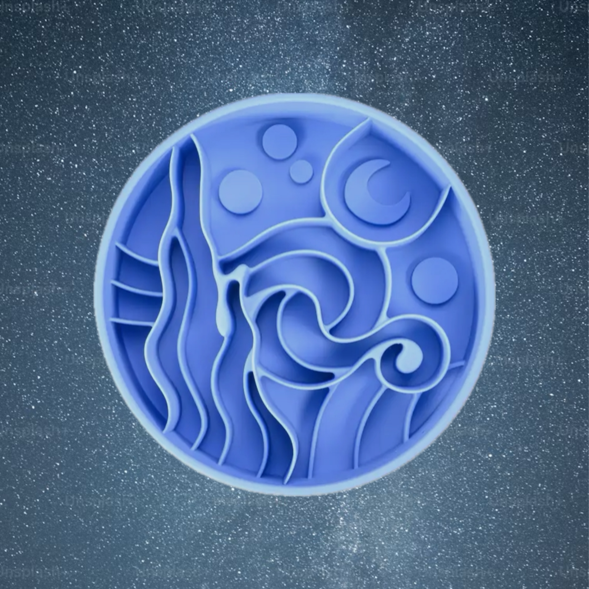 De Starry Night voerbak is gemaakt van 100% voedselveilig siliconen en BPA-vrij. De bak is geschikt voor de vaatwasser en veilig om in de vriezer te gebruiken. Aan de onderkant zitten zuignappen om de bak op zijn plek te houden.