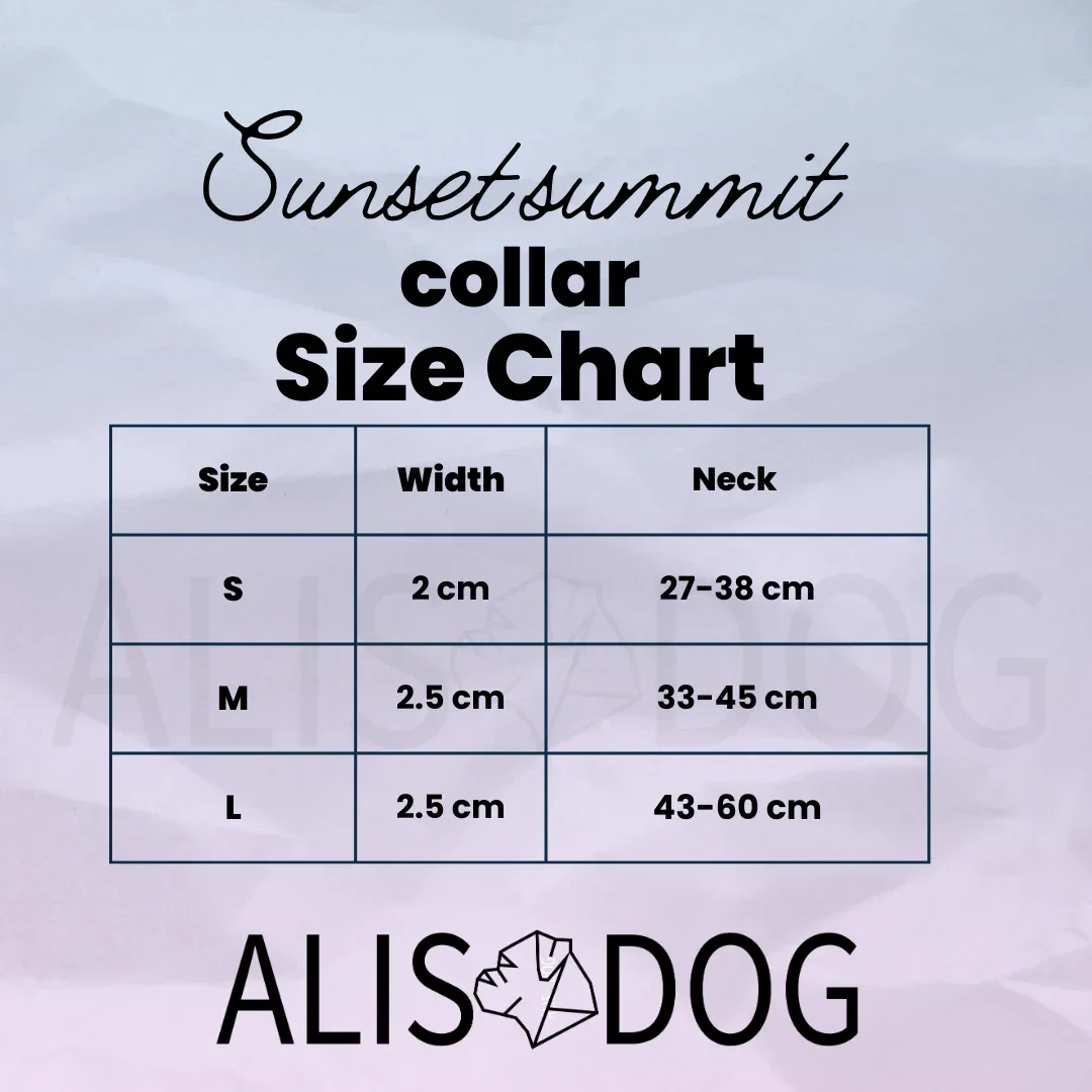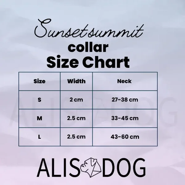 The Sunset Summit collar from Alisdog is perfect to take with you on adventures. This dog collar is not just stylish, but also fully waterproof and odor resistant. The material is very easy to clean with just some water. The Sunset Summit collar comes in 3 different sizes, S (27-38 cm), M (33-45 cm), L (43-60 cm).
