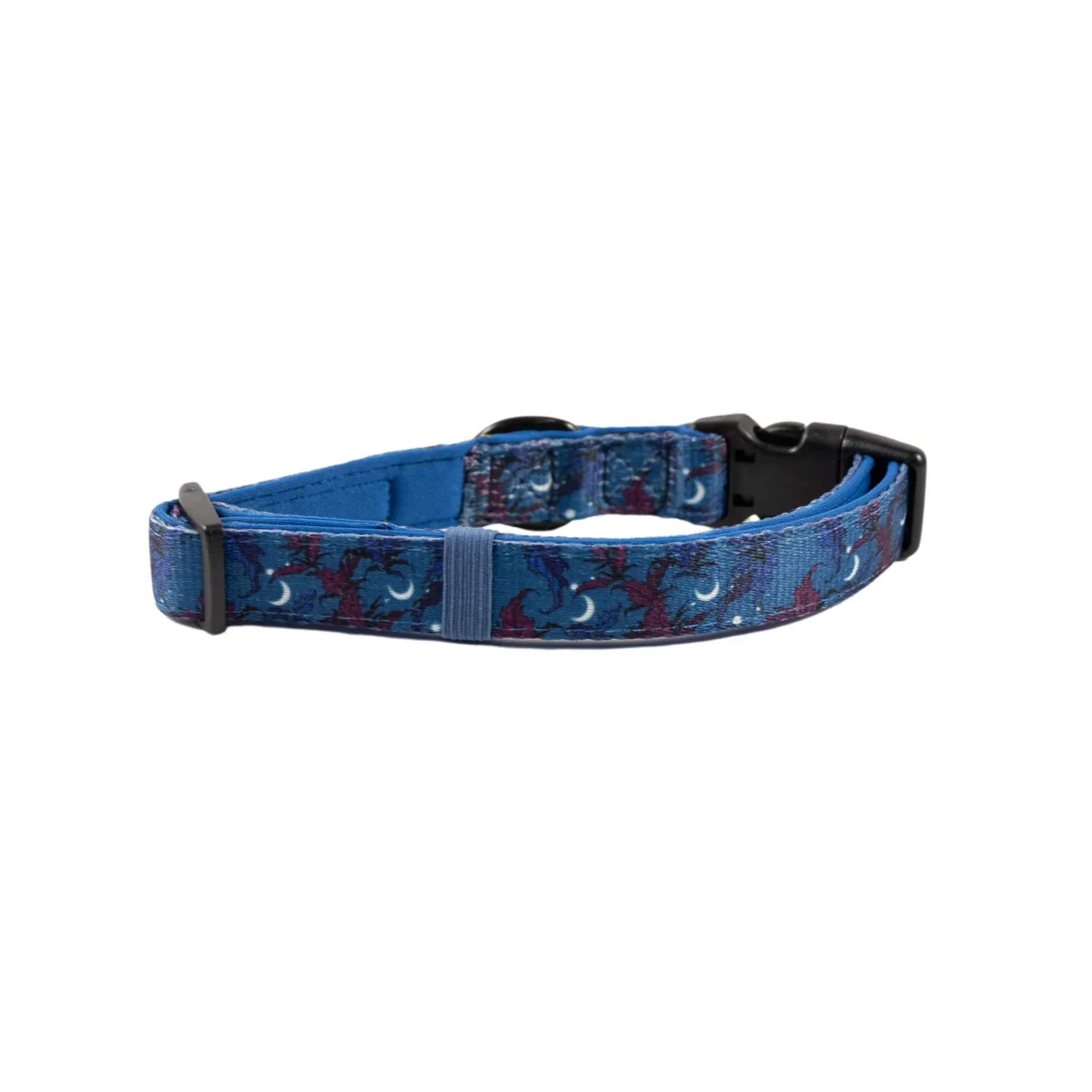 Bring a touch of the night on your walks with the Midnight Frost collar from Alisdog! The Midnight Frost collar is made with soft neoprene padding. The built in tri-glide allows for easy adjustment, making it a suitable size for almost every dog.