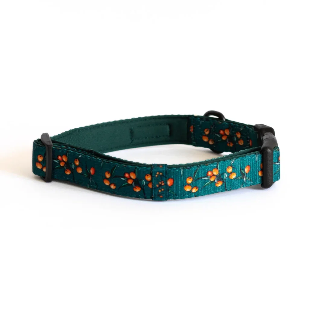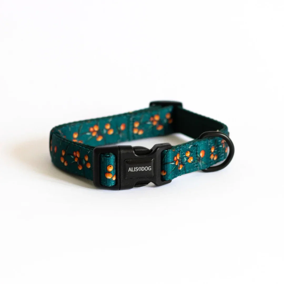 Bring a touch of taste on your walks with the Sea Buckthorn collar from Alisdog! The Sea Buckthorn collar is made with soft neoprene padding. The built in tri-glide allows for easy adjustment, making it a suitable size for almost every dog.