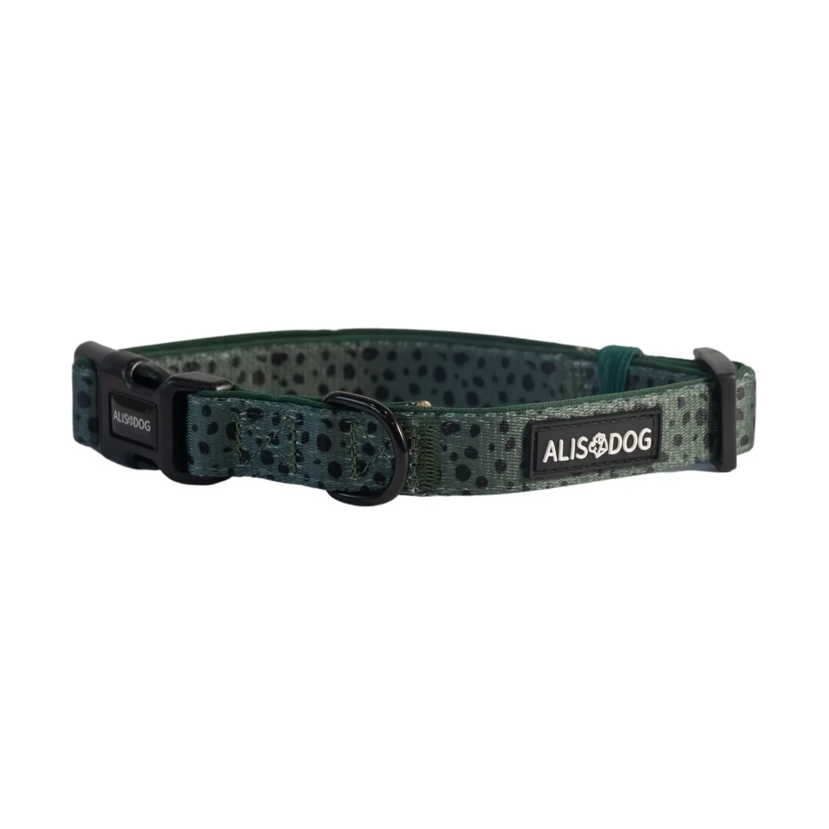Bring a touch of green on your walks with the Ellipsis collar from Alisdog! The Ellipsis collar is made with soft neoprene padding. The built in tri-glide allows for easy adjustment, making it a suitable size for almost every dog.