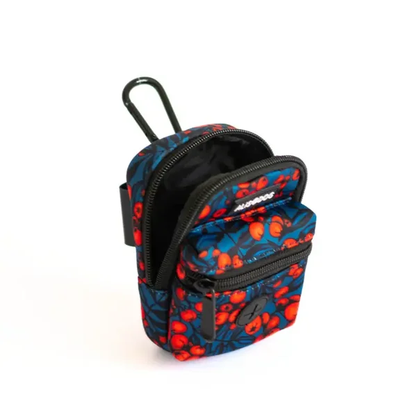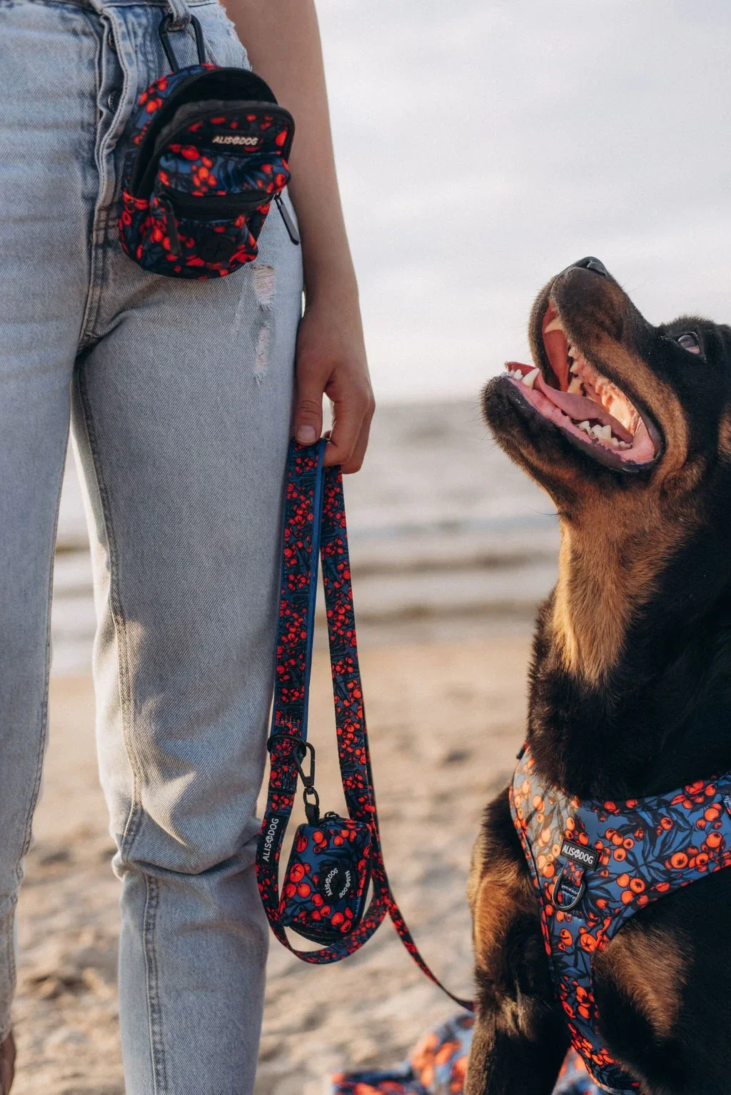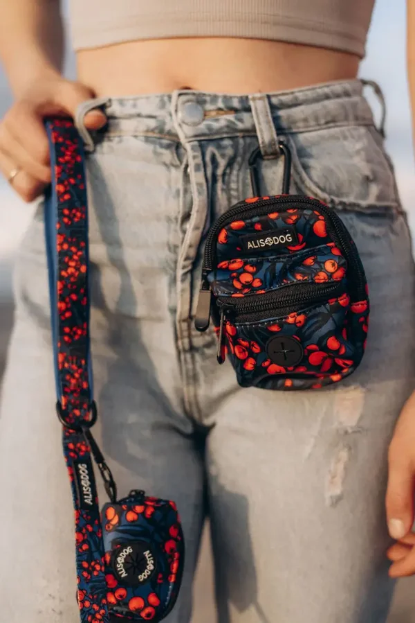 This handy yet trendy treat bag from Alisdog is perfect to take with you on your adventures! You can easily attach the treatbag to your dogs leash or your own jeans with the velcro or/and carabiner. The front pocket of the Red Berry bag features a poop bag holder and you can use the bigger pocket for treats. The back pocket also features an inside pocket to easily store your keys.