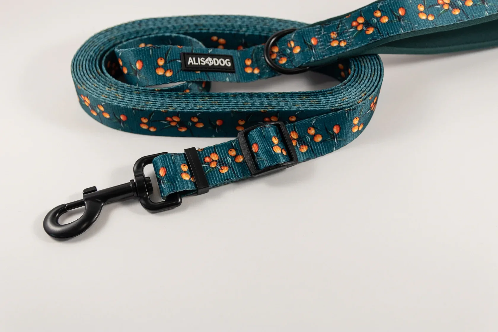 Bring a touch of taste on your walks with the Sea Buckthorn dog leash from Alisdog! This Sea Buckthorn leash has an adjustable length between 250cm and 500cm. The leash has a handy D-ring to attach your matching poopbags or treatbags to. The handle of the leash is neoprene padded for extra comfort when holding your leash.