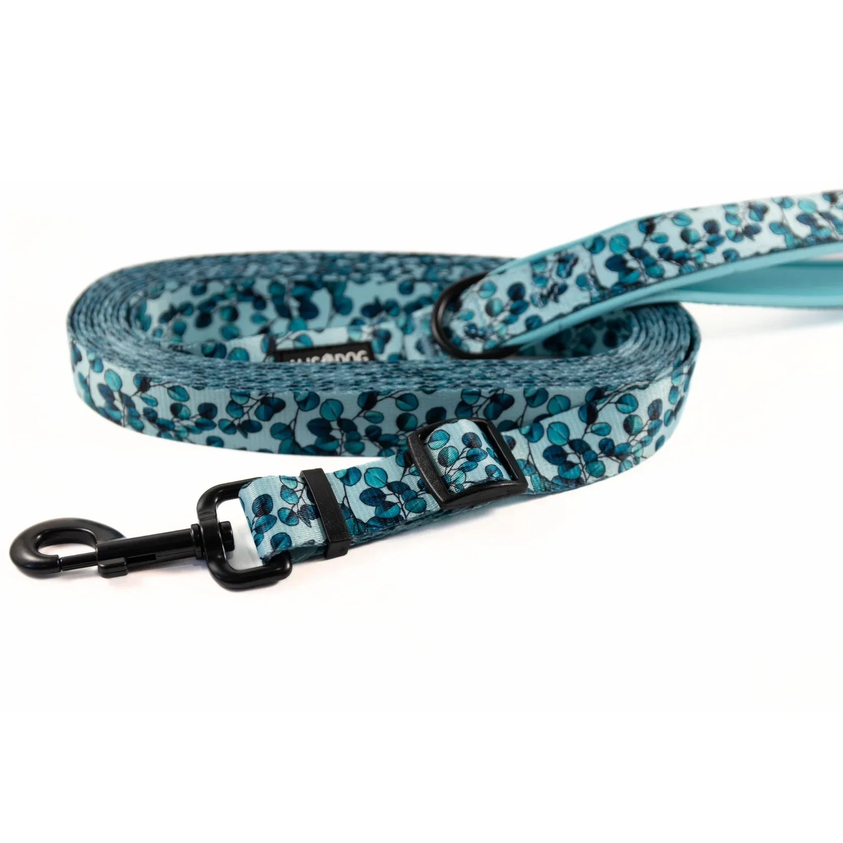 Bring a touch of freshness on your walks with the Eucalyptus dog leash from Alisdog! This Eucalyptus leash has an adjustable length between 250cm and 500cm. The leash has a handy D-ring to attach your matching poopbags or treatbags to. The handle of the leash is neoprene padded for extra comfort when holding your leash.