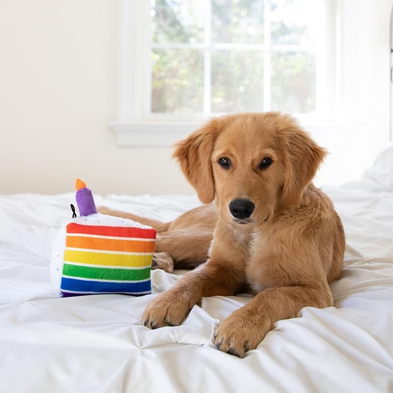 De Lulubelles Funfetti Cake knuffel heeft een extra laag mesh-materiaal voor extra stevigheid. Daarnaast bevat hij een pieper. Extra handig: hij kan in de wasmachine en droger!